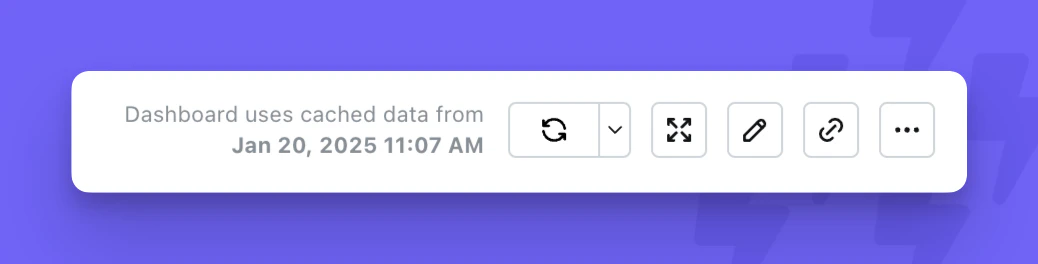 - Dashboard tiles (internal and embedded) will use the cache from saved charts they reference. If charts only exist on a single dashboard, they will refresh whenever you click the Refresh button on the dashboard.