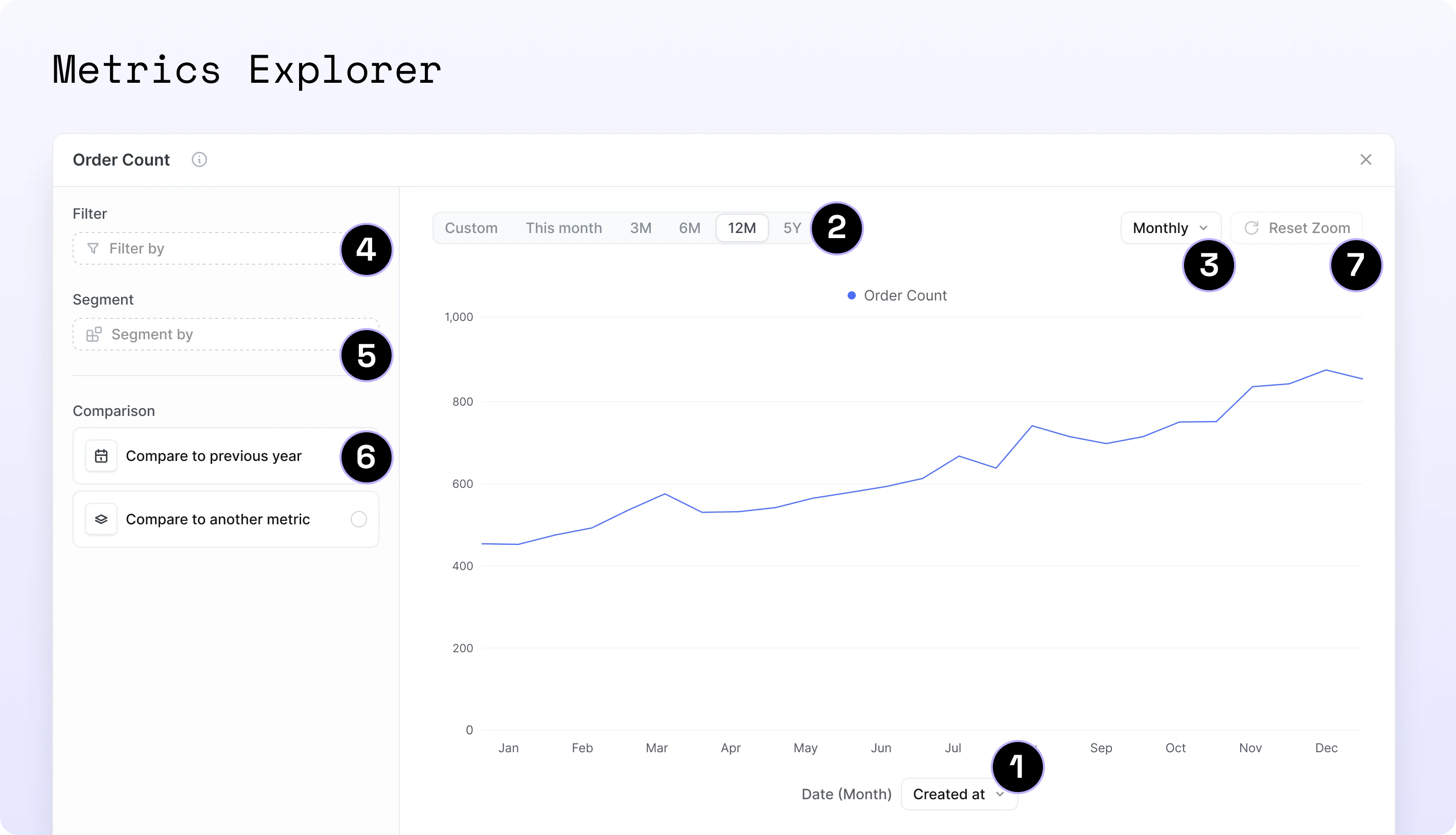 - Segment-by: Break down the metric by any non-time dimension in your dataset.